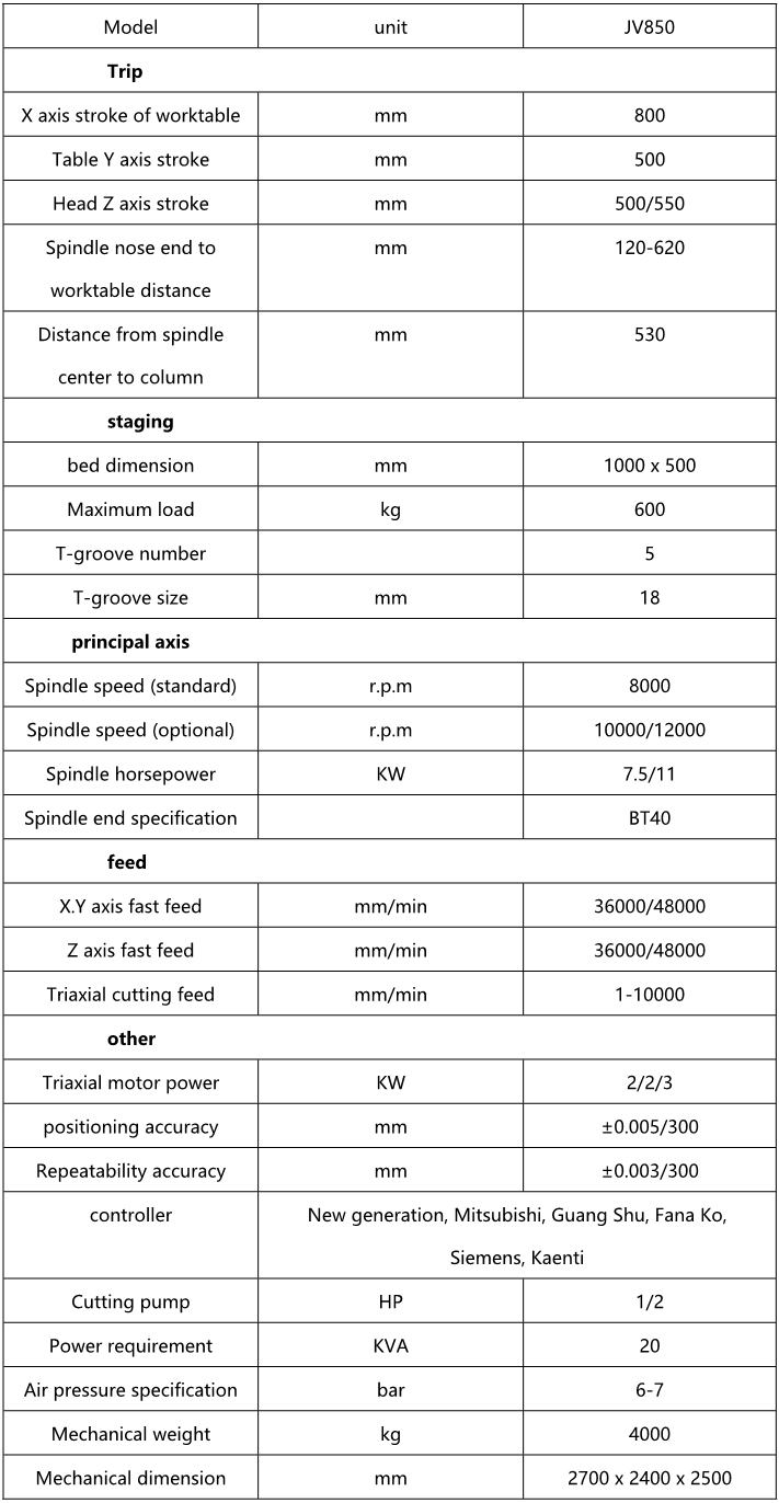 ★JV series machines, in addition to the good spindle function, more high-speed, high efficiency injection of excellent ATC, tool change speed and fast displacement speed.